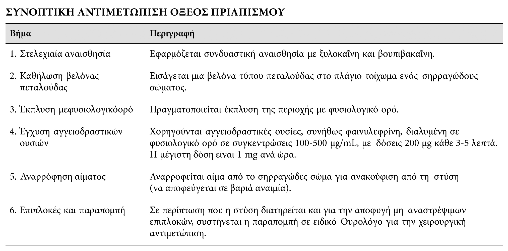 Τα βήματα για την αρχική αντιμετώπιση του ισχαιμικού πριαπισμού είναι