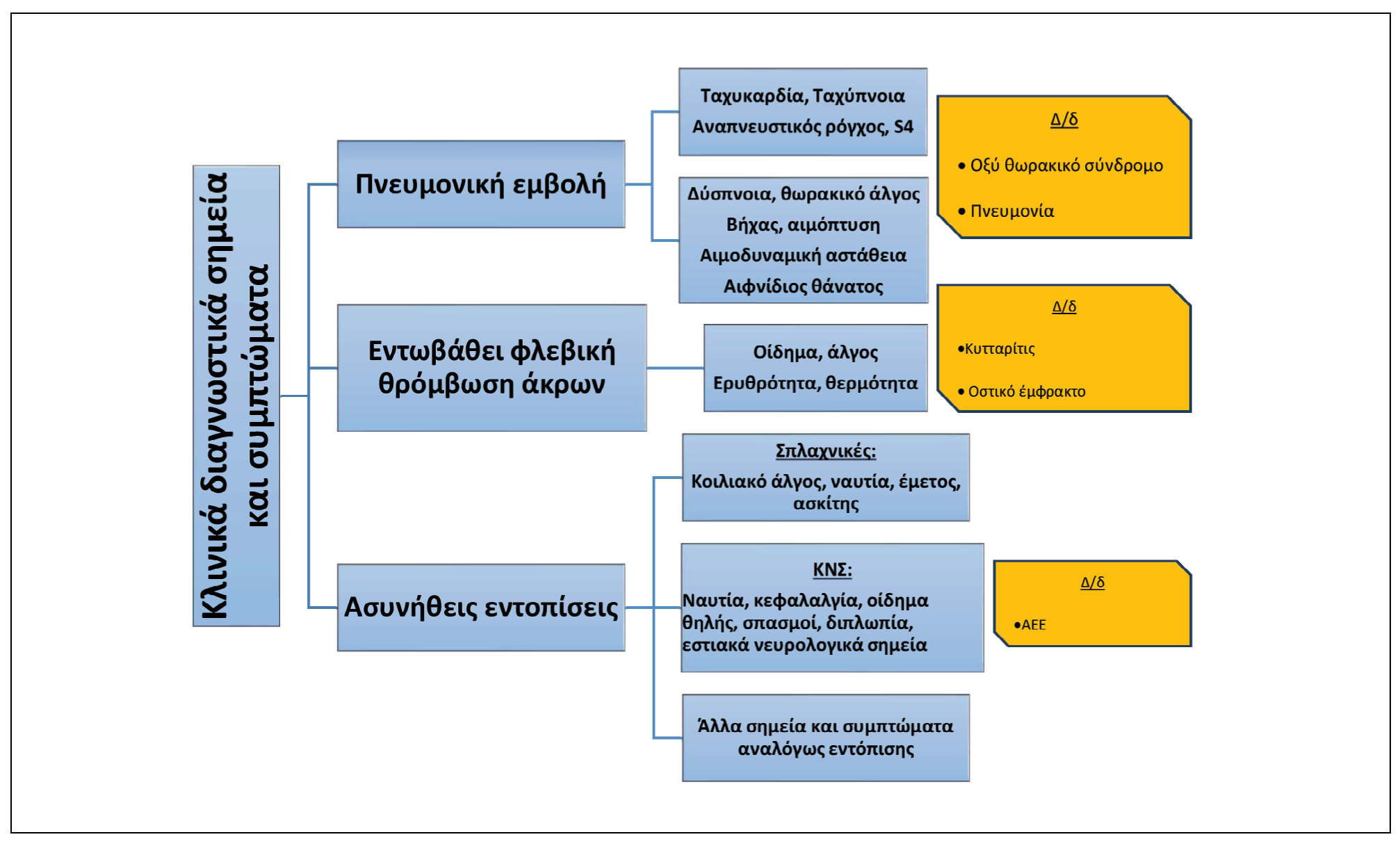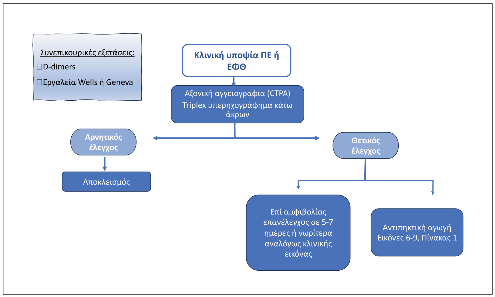 Συντμήσεις: CTPA: computedtomographypulmonaryangiography, ΠΕ: πνευμονική εμβολή, ΕΦΘ: εν τω βάθει φλεβική θρόμβωση.