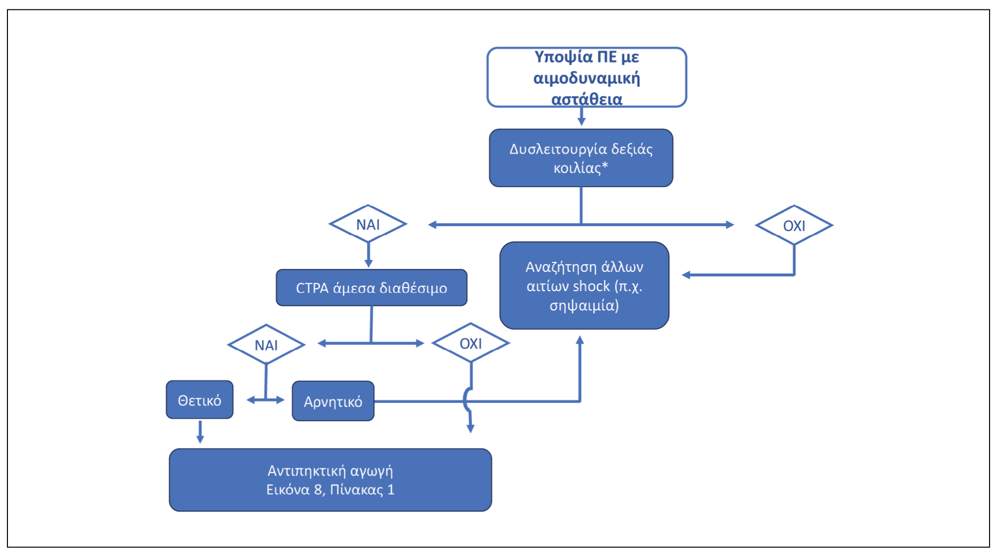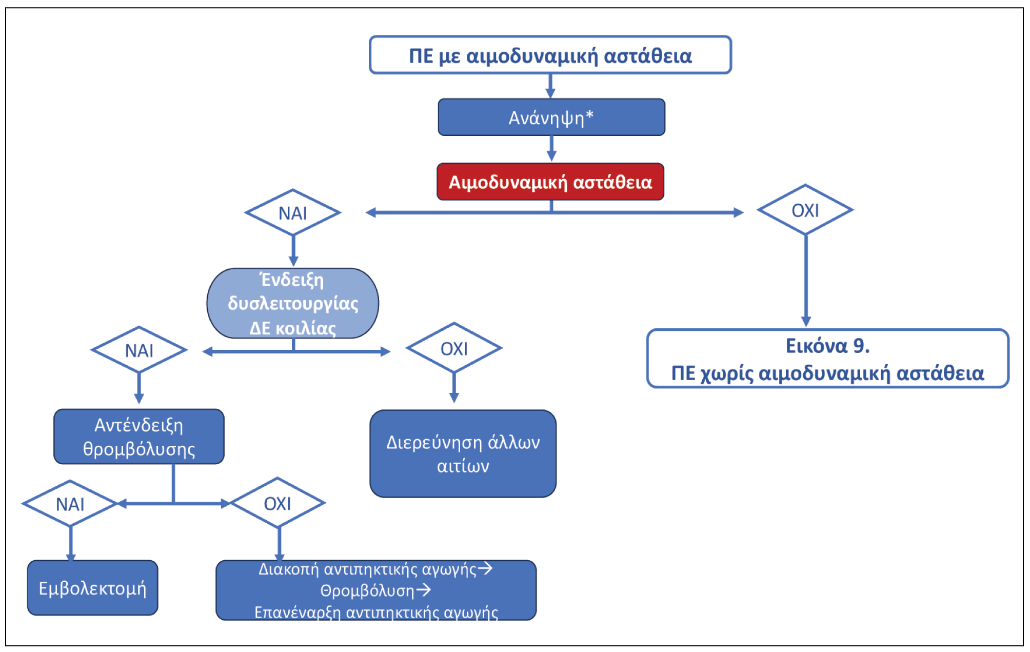 Εικόνα 8. Αλγόριθμος θεραπευτικής αντιμετώπισης ΠΕ με αιμοδυναμική αστάθεια.