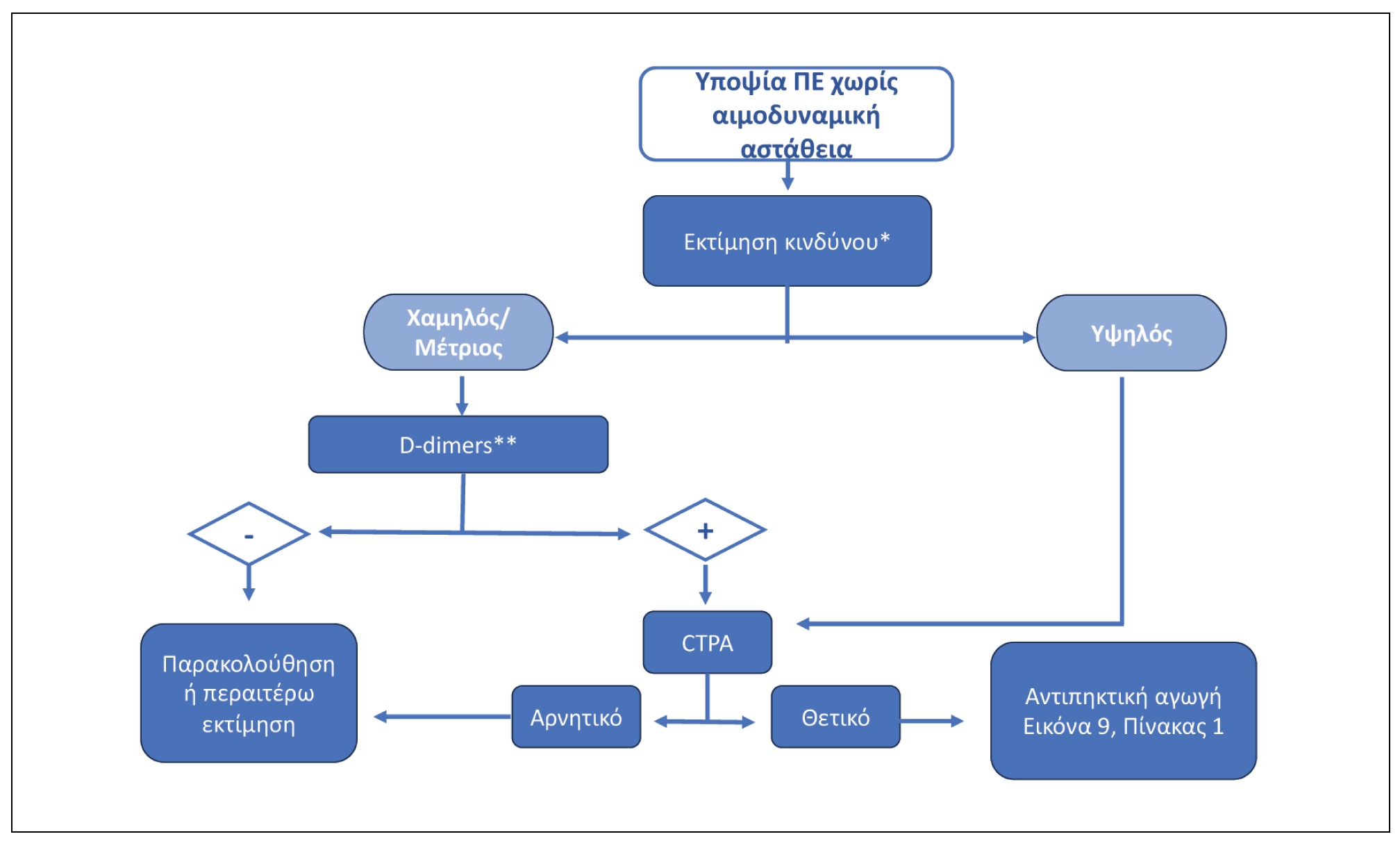 Συντμήσεις: CTPA: computed tomography pulmonary angiography, ΠΕ: πνευμονική εμβολή.