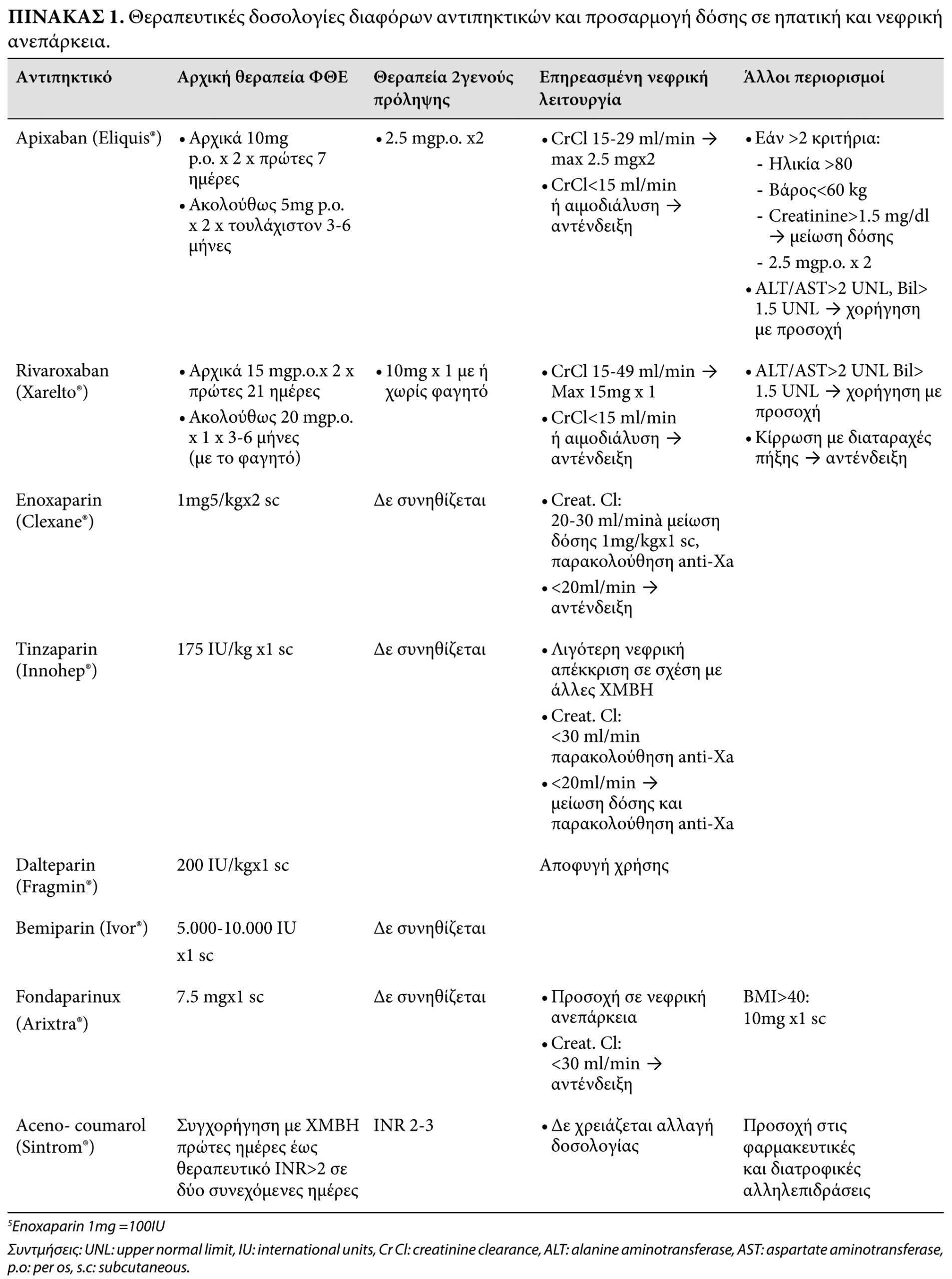 - Στους ασθενείς με κάθαρση κρεατινίνης<50 ml/min συστήνεται μείωση δοσολογίας αντιπηκτικών.