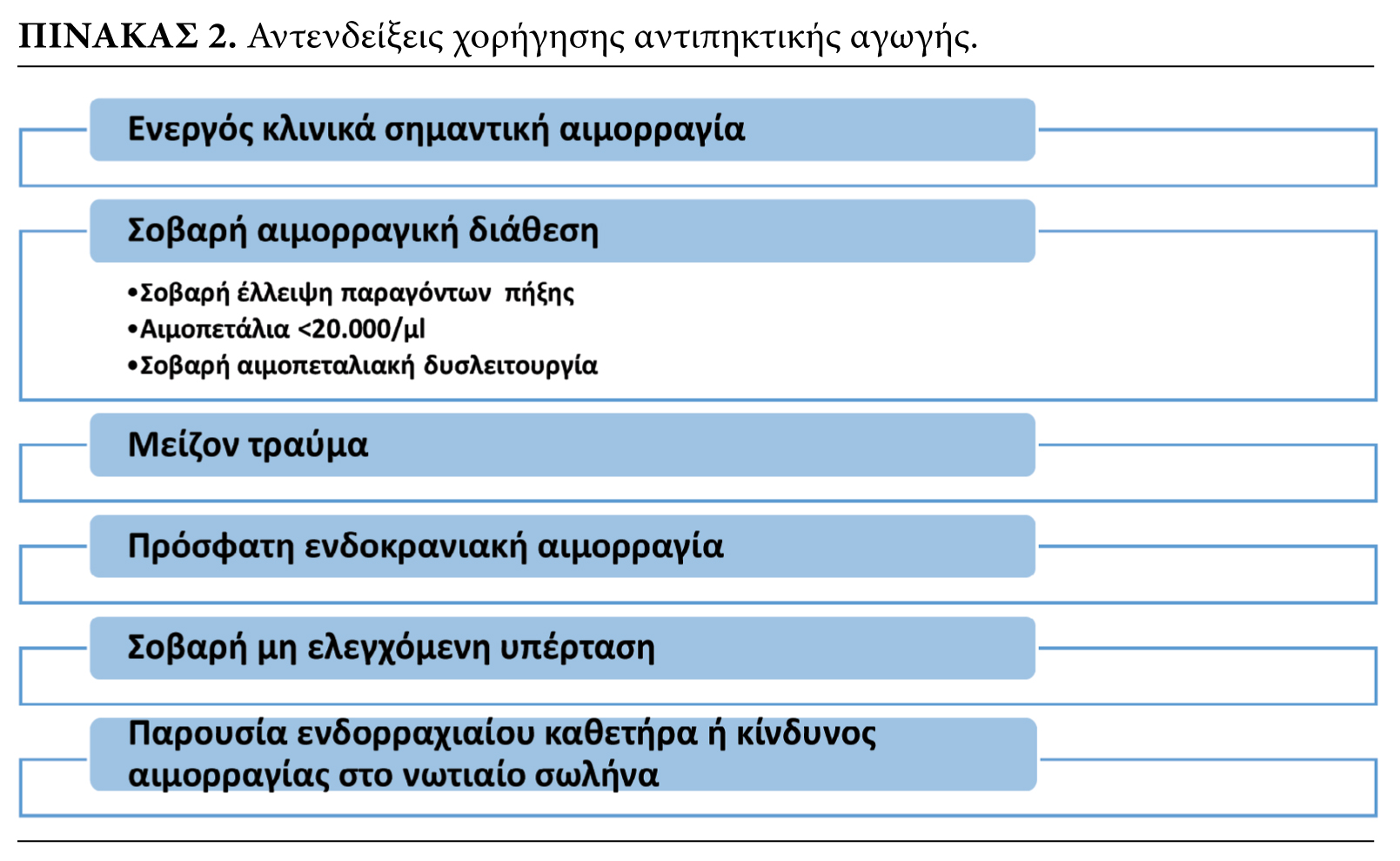 - Στις θρομβώσεις εγκεφαλικών φλεβών η παρουσία συνυπάρχουσας ενδοκρανιακής αιμορραγίας δεν αποτελεί αντένδειξη έναρξης της αντιπηκτικής αγωγής.