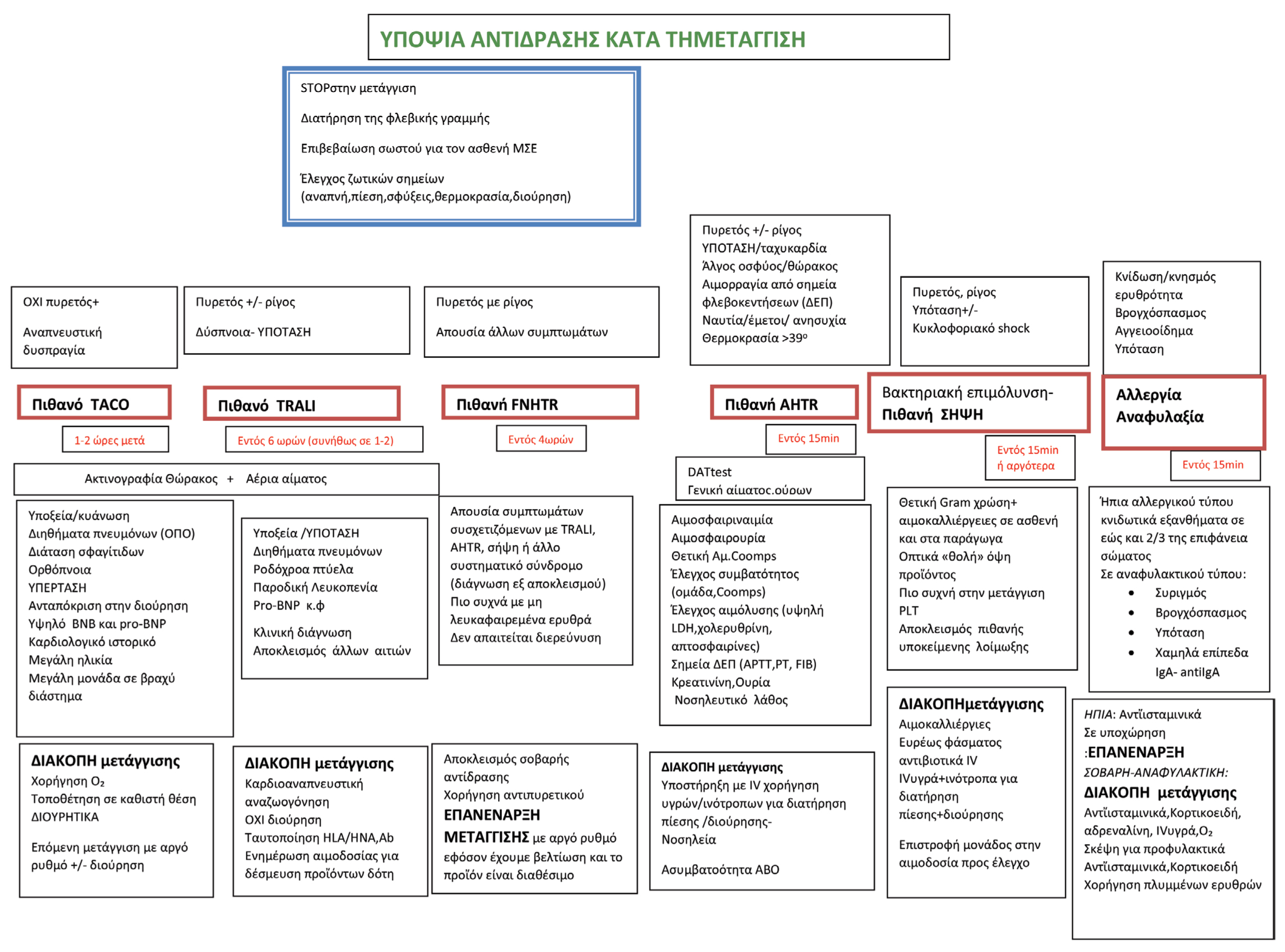 Προτείνεται ο παρακάτω αλγόριθμος αναφορικά με τα οξέα συμβάματα κατά τη διάρκεια της μετάγγισης.
